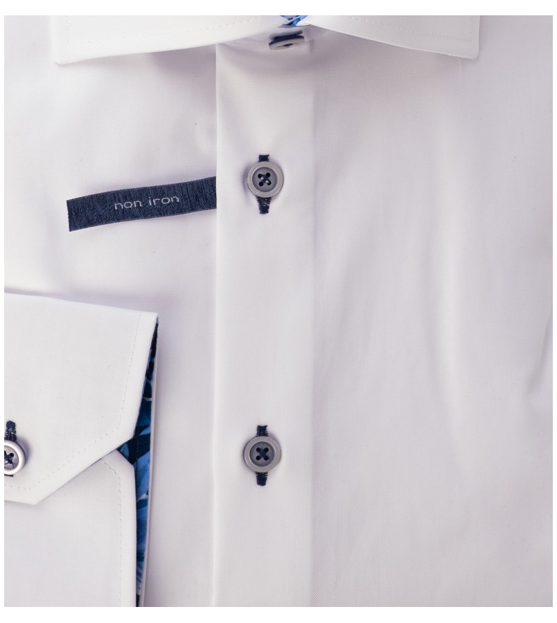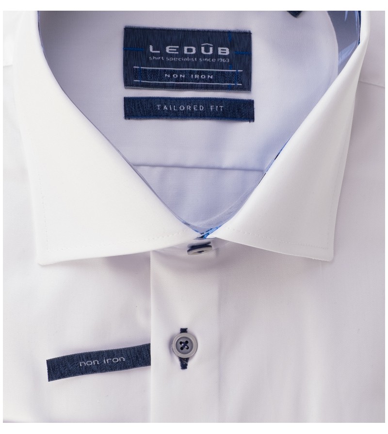 Tailored Fit Hemd lange mouw 76 cm tailored fit geen borstzakje kent kraag non iron netjes afgewerkt 100%katoen 40°was grijze knopen kleur: wit / licht blauw