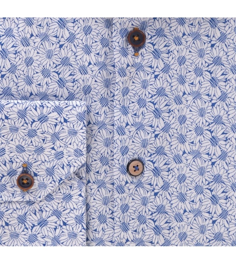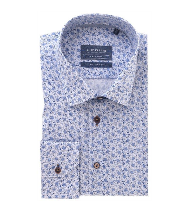 Tall Man Hemd lange mouw tailored fit strijkvrij italiaanse kraag leuk motief sportief comfortabel 100%katoen 40°was kleur: blauw