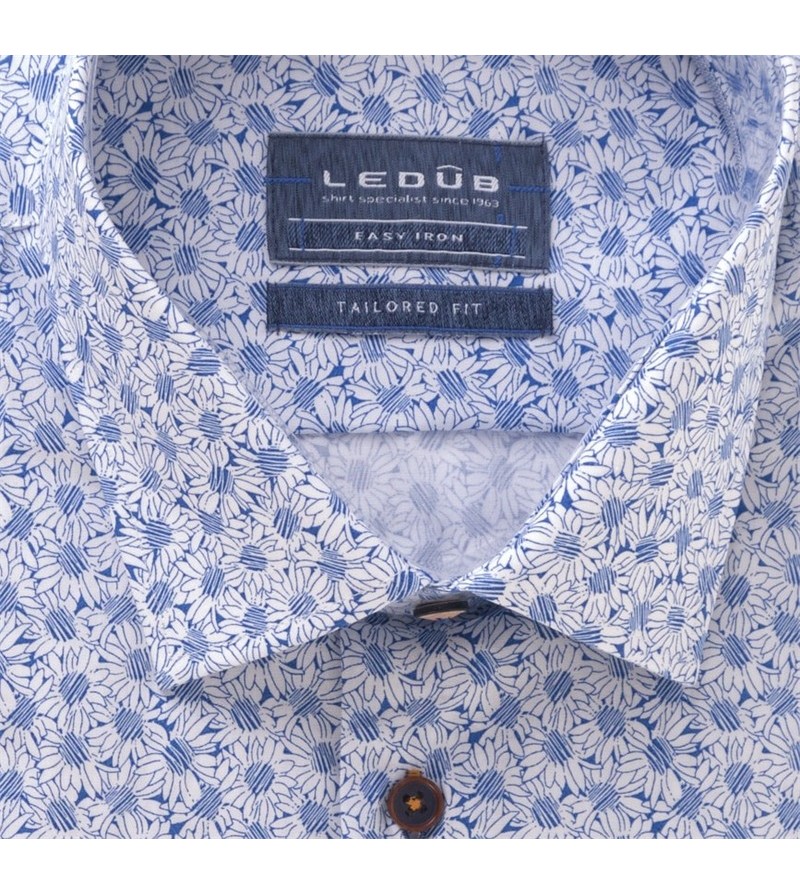 Tall Man Hemd tailored fit lange mouw 76 cm bruine knopen blauwe details stretch kent kraag easy iron netjes afgewerkt comfortabel leuk motief 97%katoen, 3%elasthaan 40°was kleur: wit
