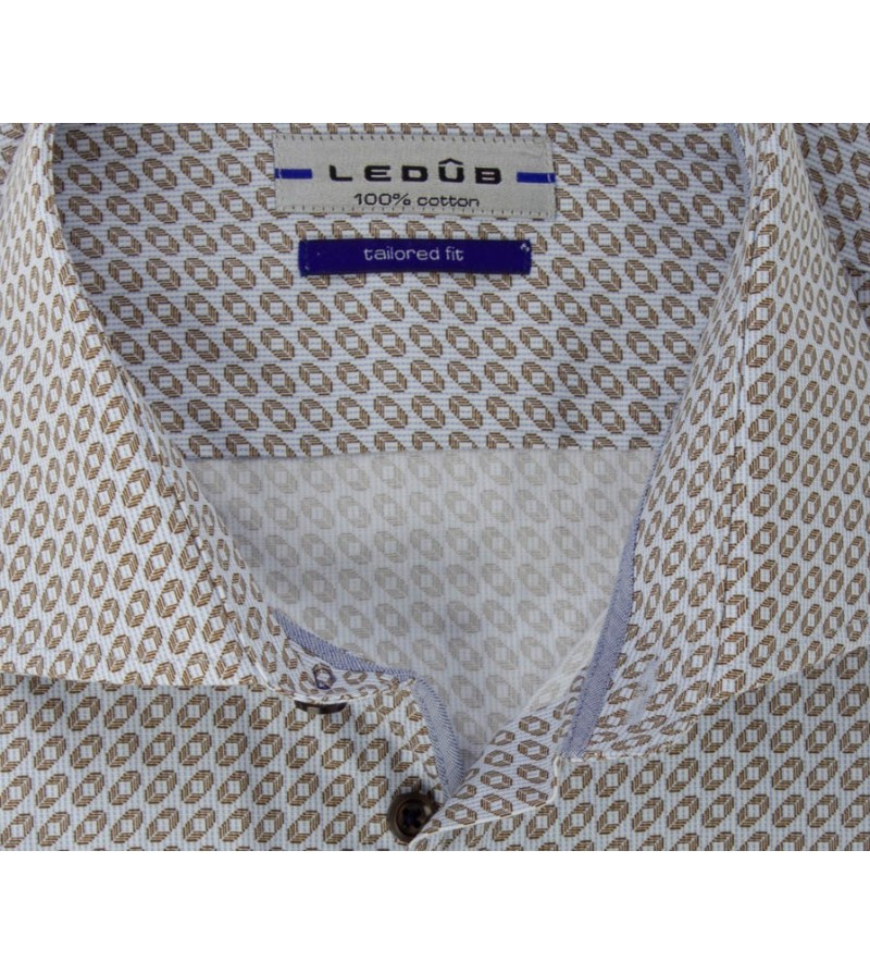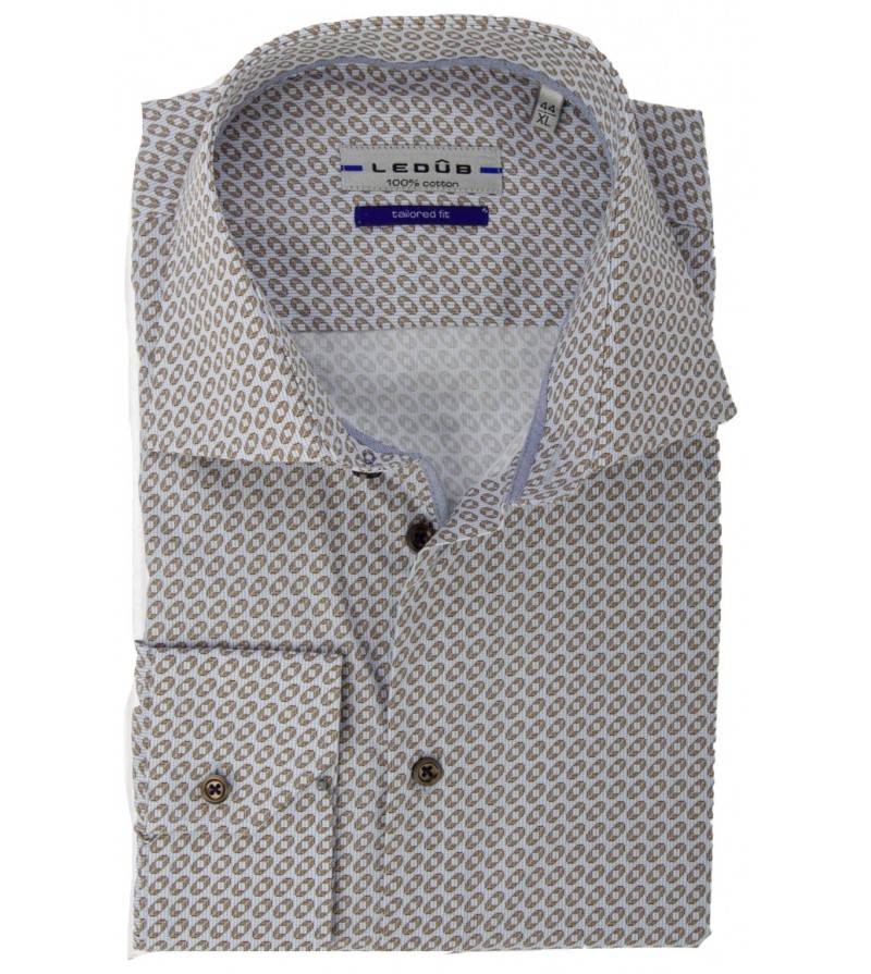 Tall Man Hemd tailored fit lange mouw 76 cm bruine knopen blauwe details stretch kent kraag easy iron netjes afgewerkt comfortabel leuk motief 97%katoen, 3%elasthaan 40°was kleur: wit