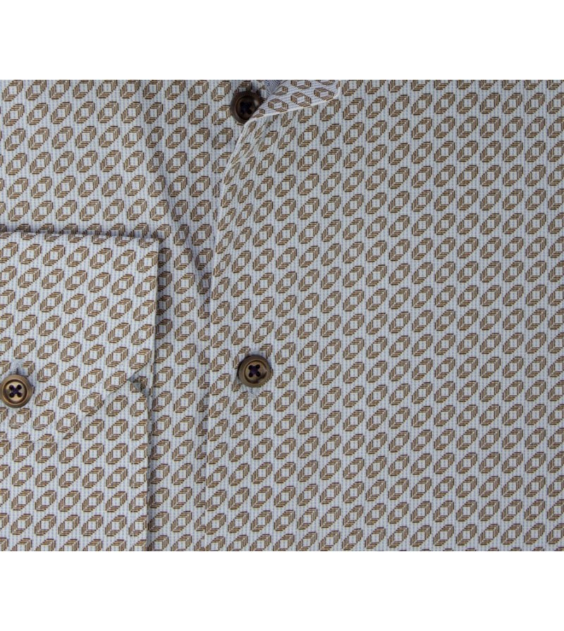 Tailored Fit Hemd lange mouw 76 cm tailored fit geen borstzakje kent kraag non iron netjes afgewerkt 100%katoen 40°was beige knopen kleur: beige / licht blauw