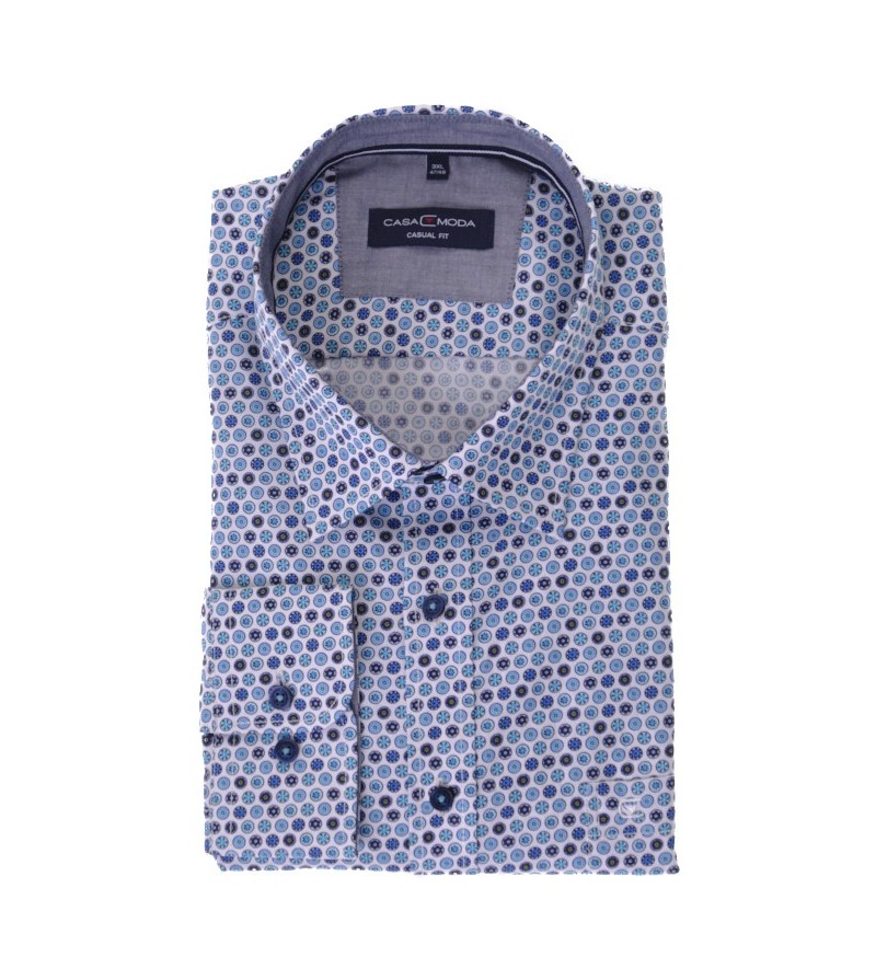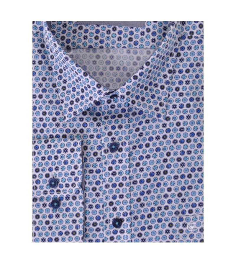 Tall Man Hemd lange mouw tailored fit kent kraag bolletjes motief met navy contrasten sportief netjes afgewerkt comfortabel 100%katoen 40°was kleur: blauw