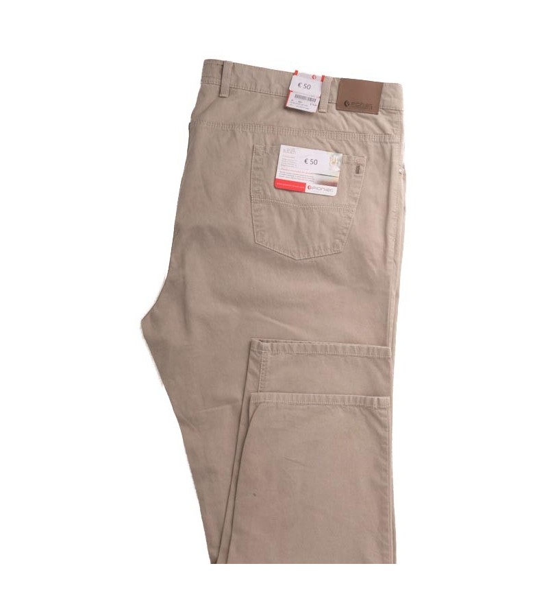 Big Man Broek model Thomas lage taille voelt zacht aan 5 pockets netjes afgewerkt lusjes voor riem comfortabel comfort flexx dunne zomer kwaliteit 98%katoen, 2%elasthaan 30°was kleur: beige