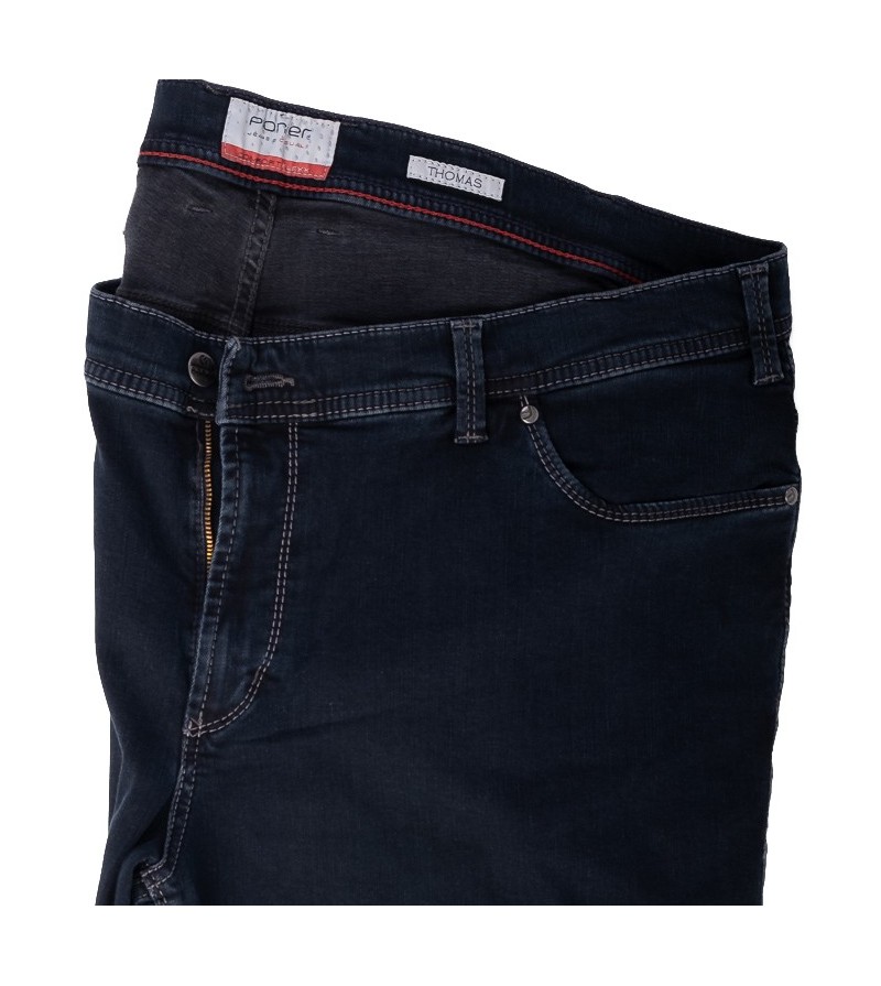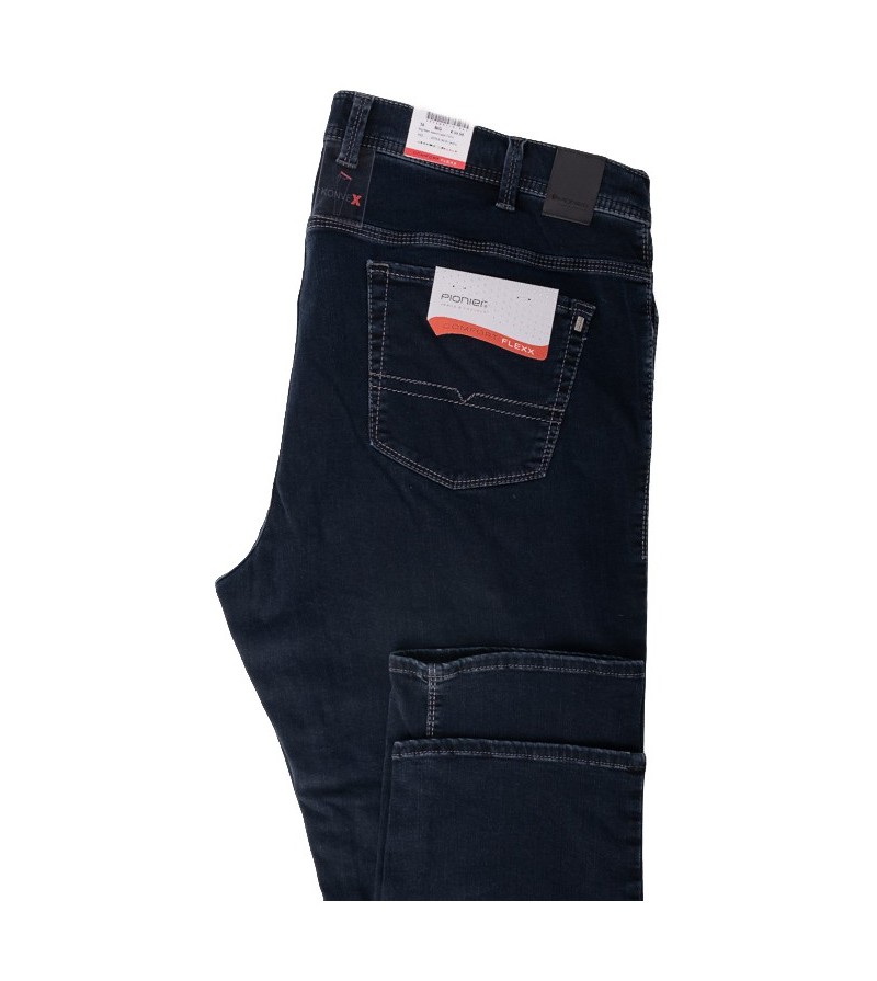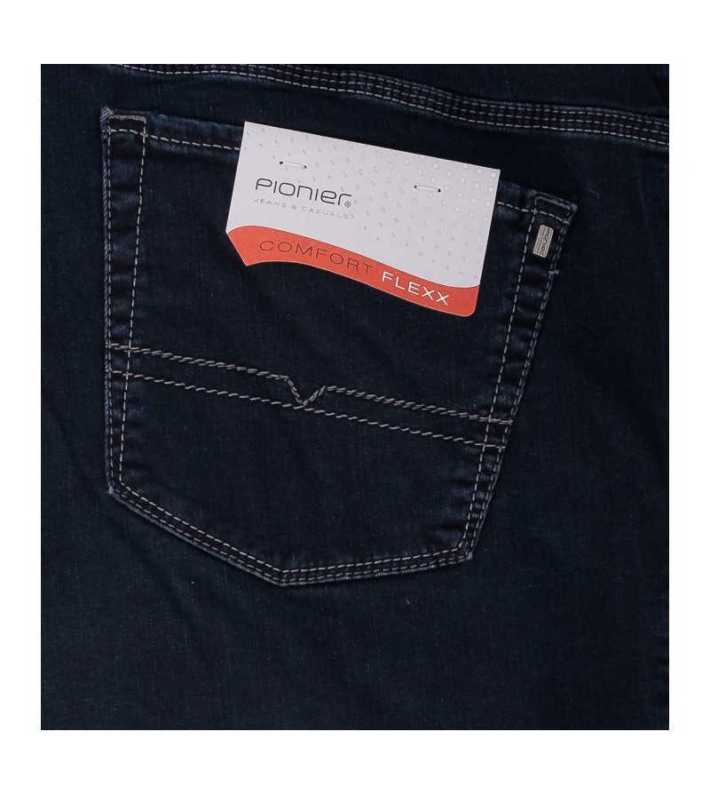 Pioneer comfort flexx 2079 6185 61 extra lage taille mooie kleurschakering met bruine stiksels stoere canvas stof model: Thomas 98%katoen 2%elasthan strakker op de bovenbenen regular fitting cleane wassing kleur: dark stone washed