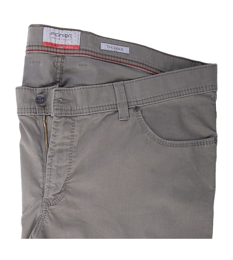 Thomas - tussenbeenlengte 32 inche model Thomas LAGE TAILLE MEGAFLEX 5 pockets netjes afgewerkt lusjes voor riem 98%katoen 2% Elasthaan 100% kleurvast zeer comfortabele stof puur comfort verslavend!!! rekt goed mee kleur: licht grijs
