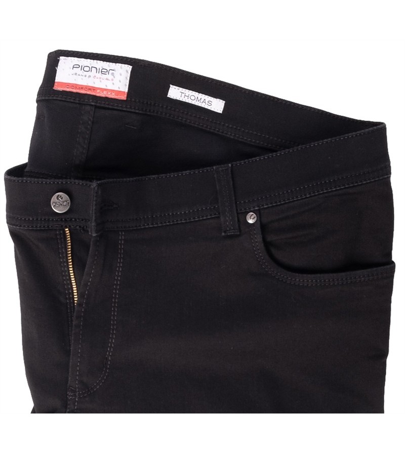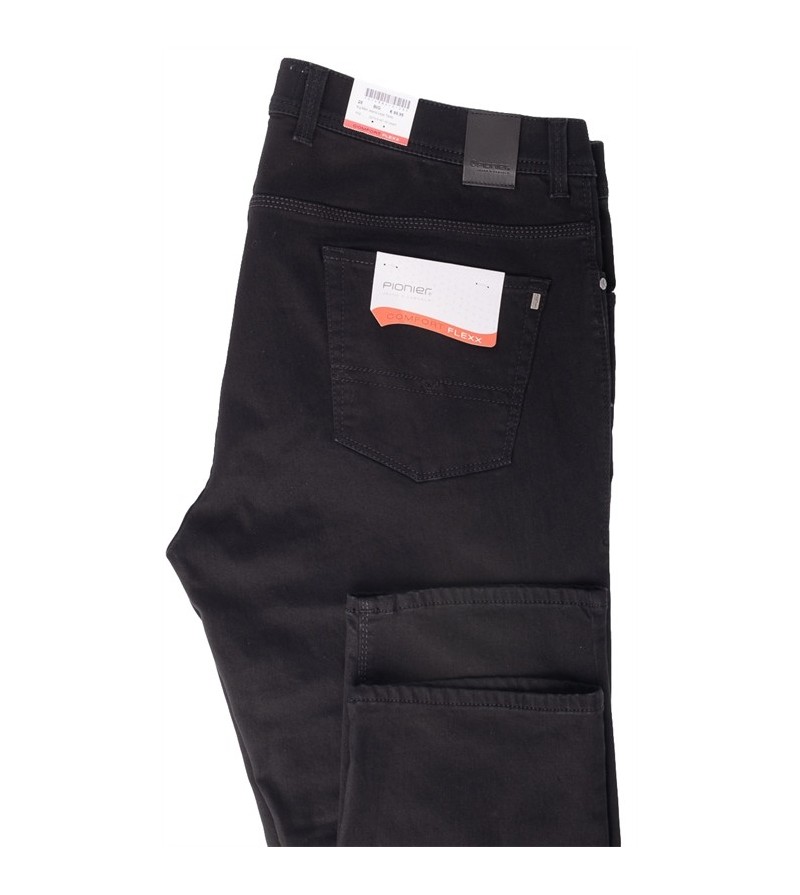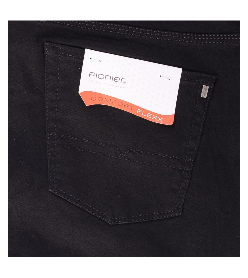 Pioneer comfort flexx 2079 6185 61 extra lage taille mooie kleurschakering met bruine stiksels stoere canvas stof model: Thomas 98%katoen 2%elasthan strakker op de bovenbenen regular fitting cleane wassing kleur: dark stone washed