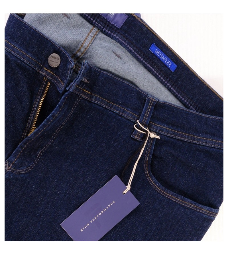 Thomas - tussenbeenlengte 32 inche 1601 9886 02 NOS MEGAFLEX zeer goede pasvorm!!! Model: Thomas stoere canvas stof egale kleur cleane wassing grijs gevlamde garen lusjes voor riem 5 pocket comfortabele snit 92%katoen,6% poleyster, 2%elasthaan 100% kleurvast denim stof kleur: Dark clean denim