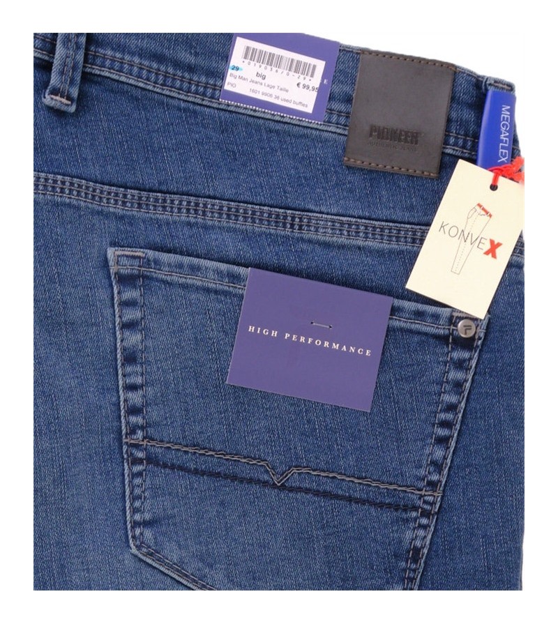 Big Man Jeans lage taille 1601 9761 440 met buffies (kreukels) met moustachen model Thomas stretch stof comfortabel kwaliteit 5 pocket lusjes voor riem megaflex 91%katoen, 7% polyester, 2%elasthaan 40°was kleur: jeans