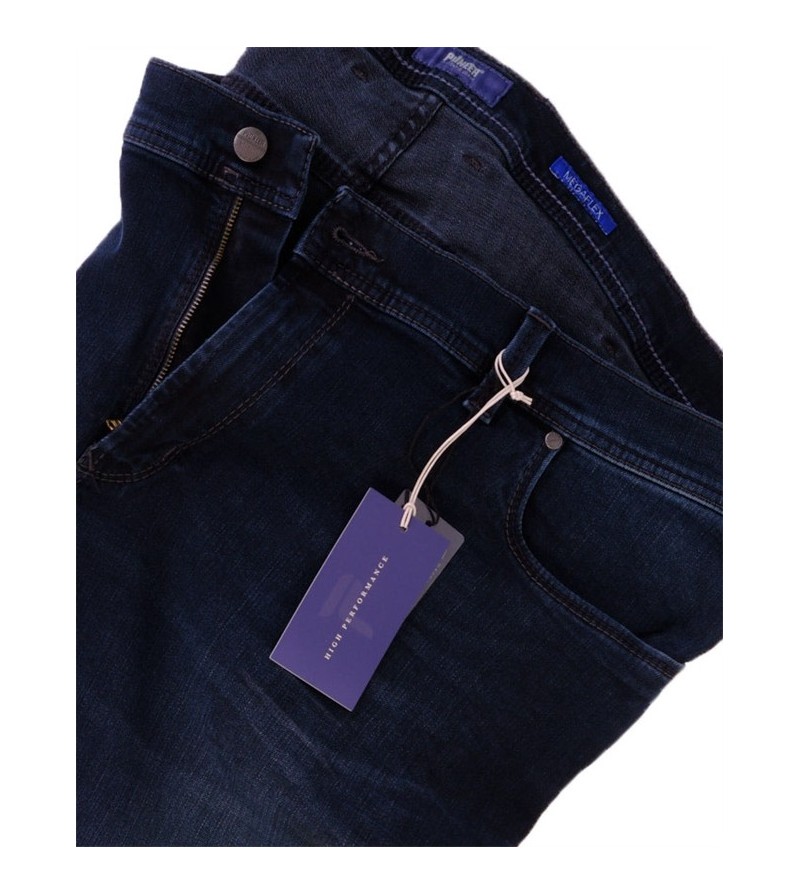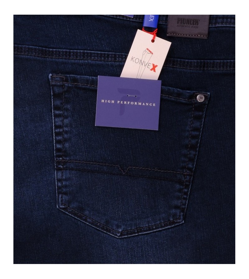 Pioneer comfort flexx 2079 6185 61 extra lage taille mooie kleurschakering met bruine stiksels stoere canvas stof model: Thomas 98%katoen 2%elasthan strakker op de bovenbenen regular fitting cleane wassing kleur: dark stone washed