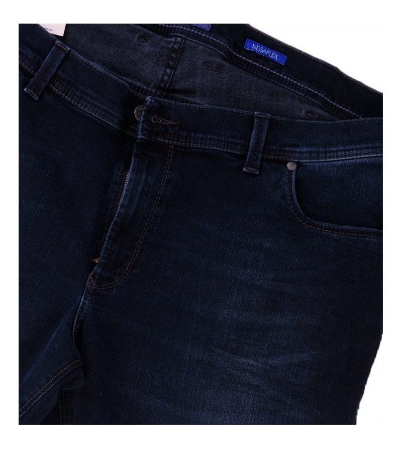 Thomas - tussenbeenlengte 32 inche 1601 9886 02 NOS MEGAFLEX zeer goede pasvorm!!! Model: Thomas stoere canvas stof egale kleur cleane wassing grijs gevlamde garen lusjes voor riem 5 pocket comfortabele snit 92%katoen,6% poleyster, 2%elasthaan 100% kleurvast denim stof kleur: Dark clean denim