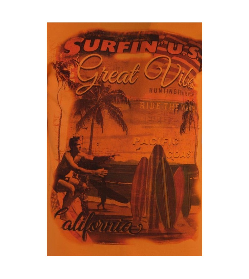 Tall Man Tshirt korte mouwen ronde hals comfortabel goede pasvorm kwaliteit netjes afgewerkt sportieve look zomerse kleur leuke opdruk 100%katoen 30°was kleur: oranje