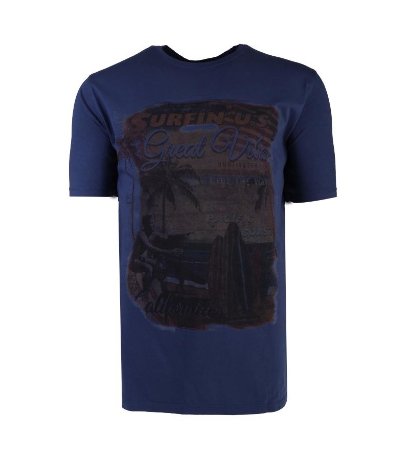 TALL MAN Tshirt korte mouwen ronde hals comfortabel kwaliteit netjes afgewerkt sportieve look zomerse kleur leuke opdruk 100%katoen 30°was kleur: blauw