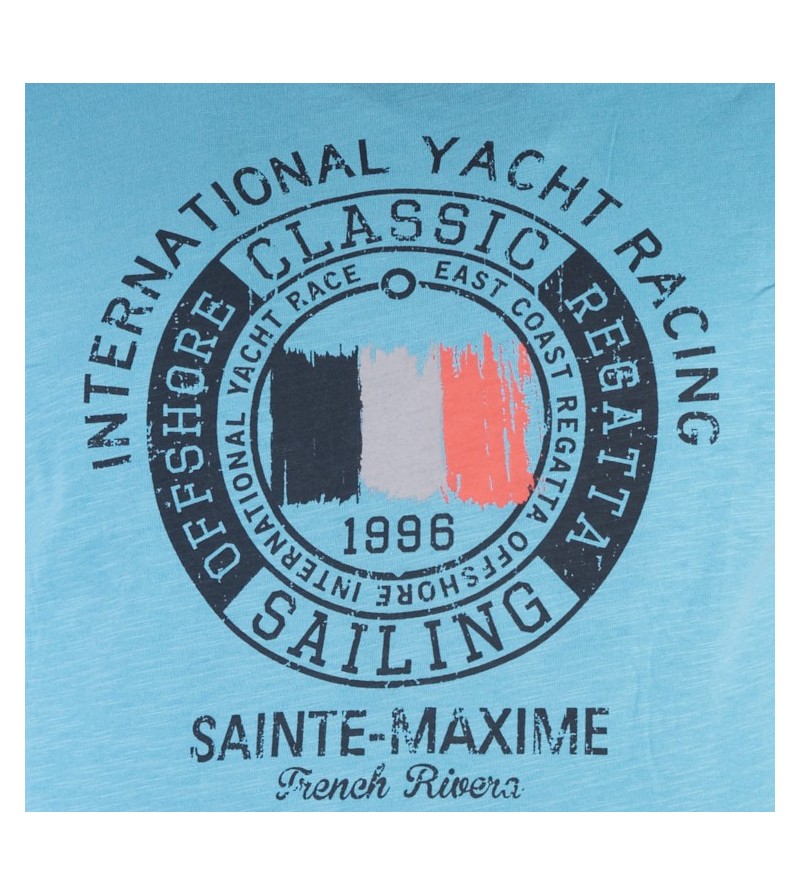 TALL MAN Tshirt korte mouwen ronde hals comfortabel kwaliteit netjes afgewerkt sportieve look zomerse kleur leuke opdruk 100%katoen 30°was kleur: blauw
