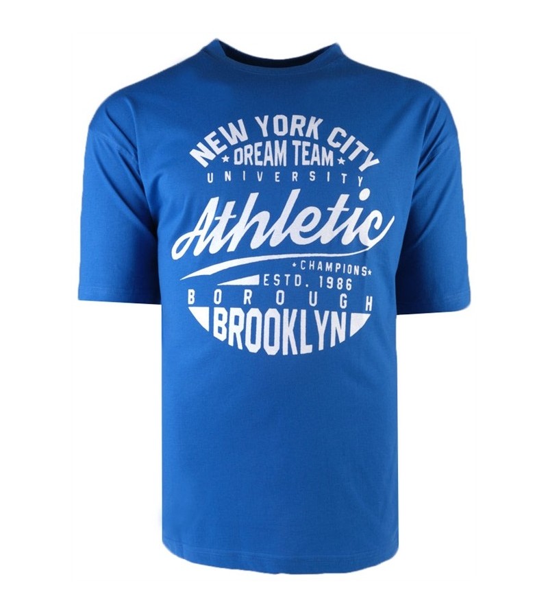 Big Man Tshirt korte mouw ronde hals comfortabel goede pasvorm netjes afgewerkt sportieve look mooie opdruk 100%katoen 40°was kleur : blauwgroen