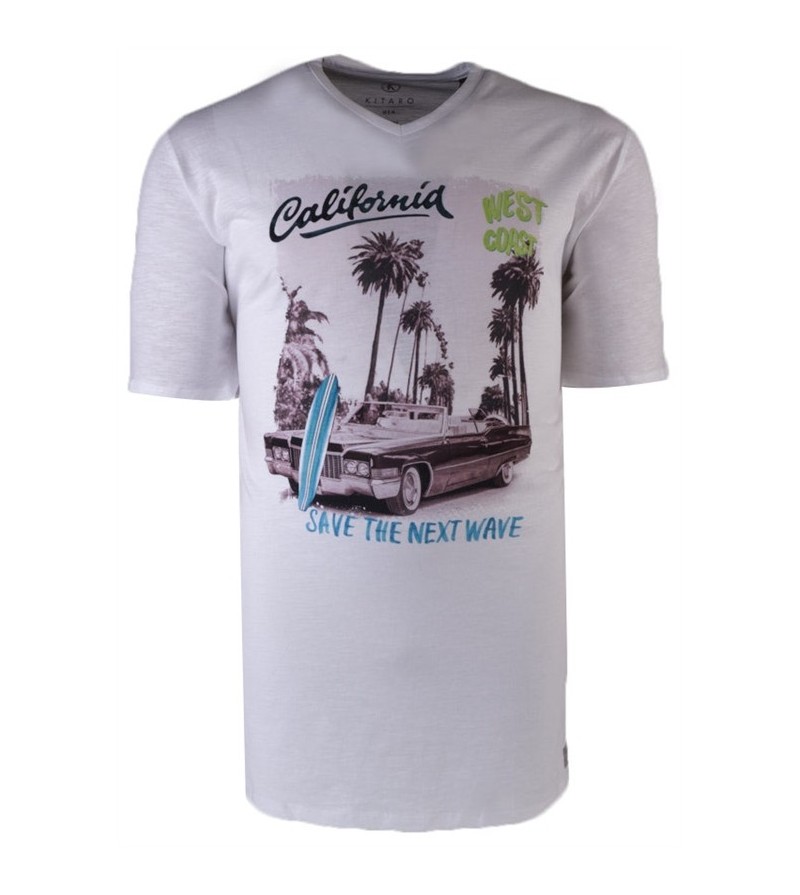 Tall man Tshirt korte mouwen ronde hals comfortabel kwaliteit netjes afgewerkt sportieve look zomerse kleur leuke opdruk 100%katoen 30°was kleur: licht grijs