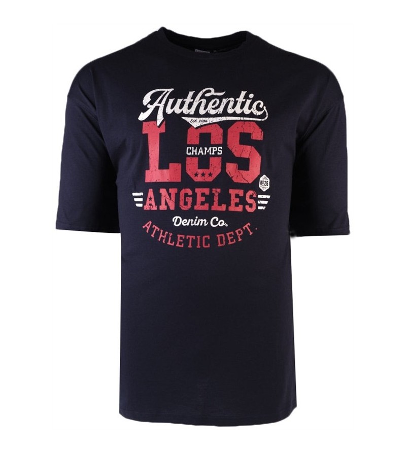 Big Man Tshirt korte mouw ronde hals goede pasvorm comfortabel kwaliteit sportieve look mooie opdruk 100%katoen 40°was kleur : navy