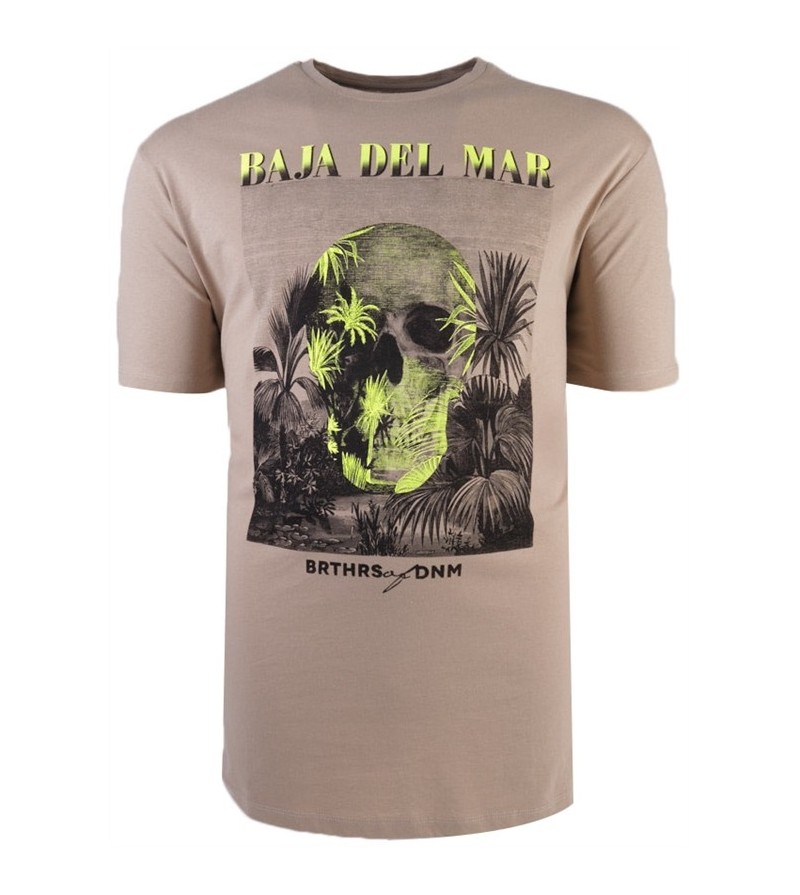Big Man Tshirt zwaardere jersey stof korte mouw ronde hals comfortabel goede pasvorm kwaliteit sportieve look grijze opdruk 100%katoen 40°Was kleur: oker