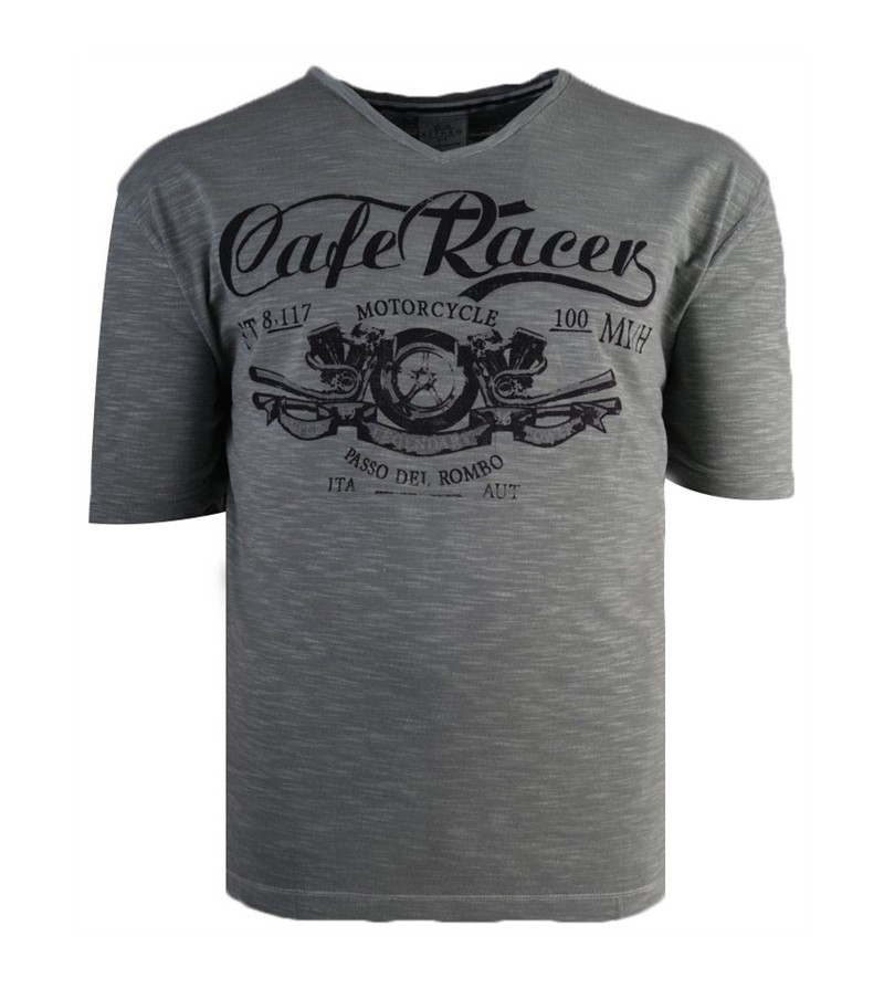 Big Man Tshirt korte mouw ronde hals comfortabel kwaliteit netjes afgewerkt goede pasvorm dunne stof stoere look mooie opdruk 100%katoen 30°was kleur : antraciet