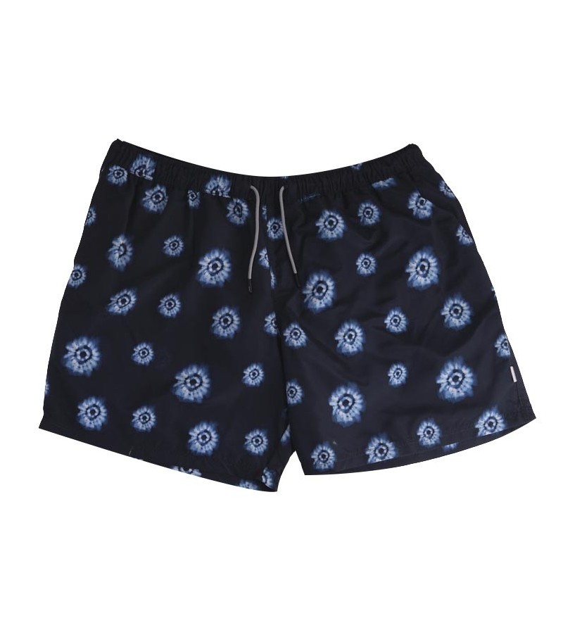 Big Man Zwemshort met binnenbroek met touwtje in lenden 100% polyester 100% kleurvast zakje op de rug twee steekzakken kleur: grijs met blauwe bloemen